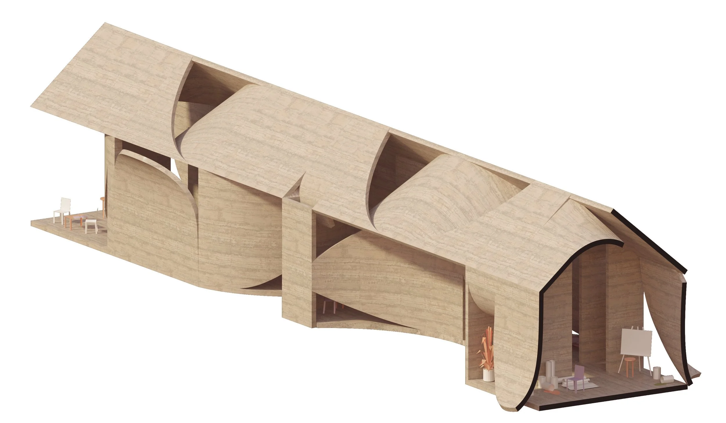 Materials: Glulam, CLT, SteelCarving Light / Enfilade of Shifting Light and Shadow