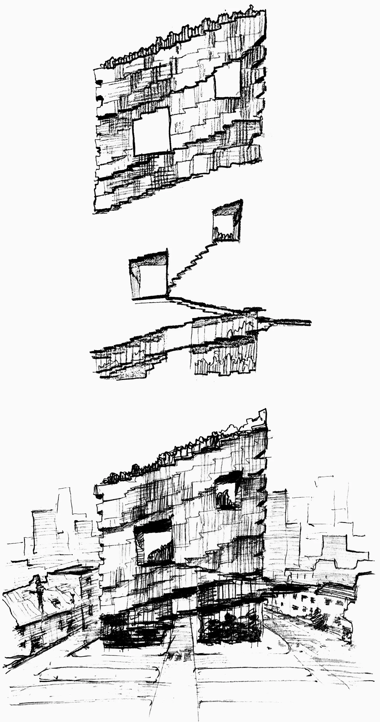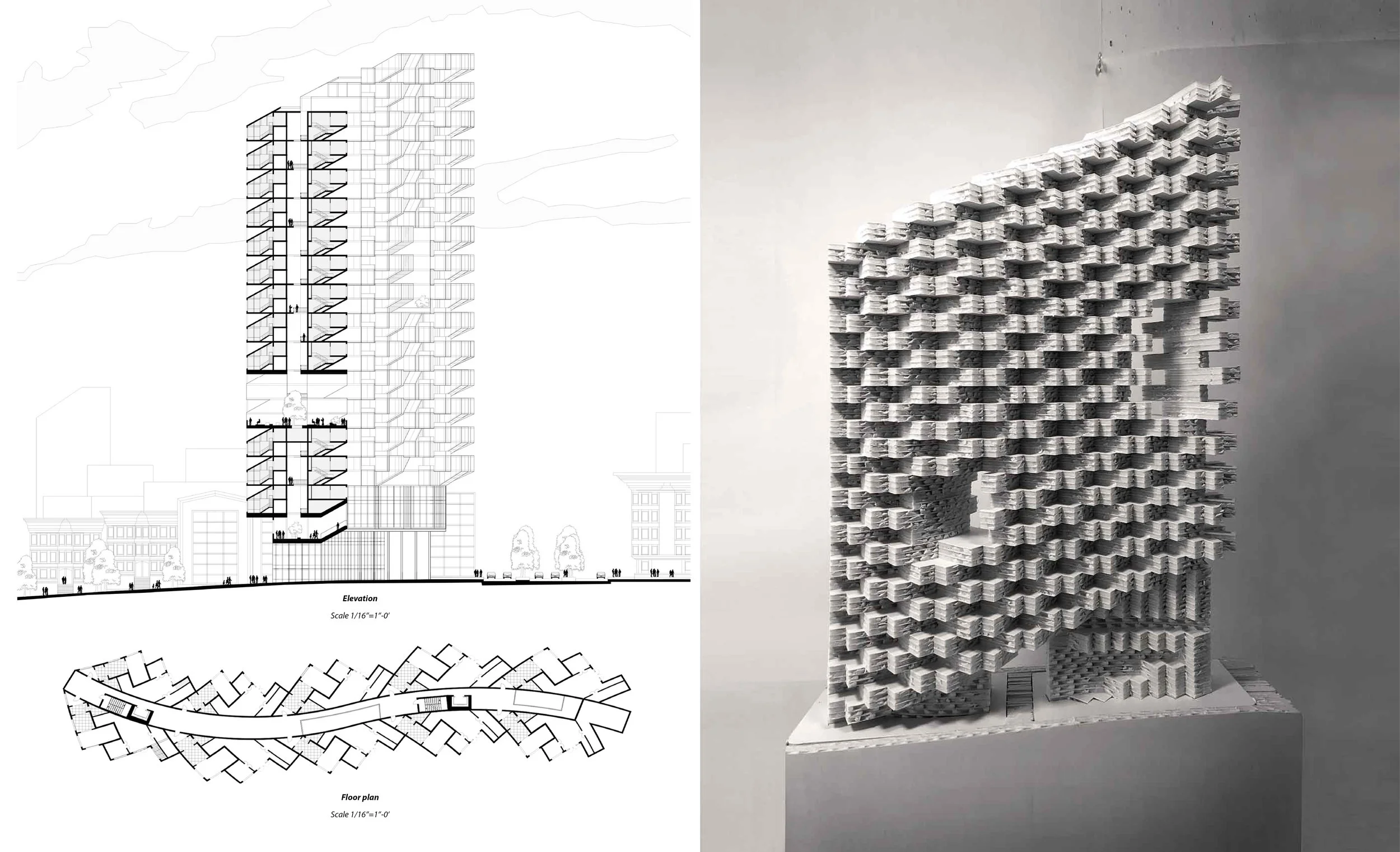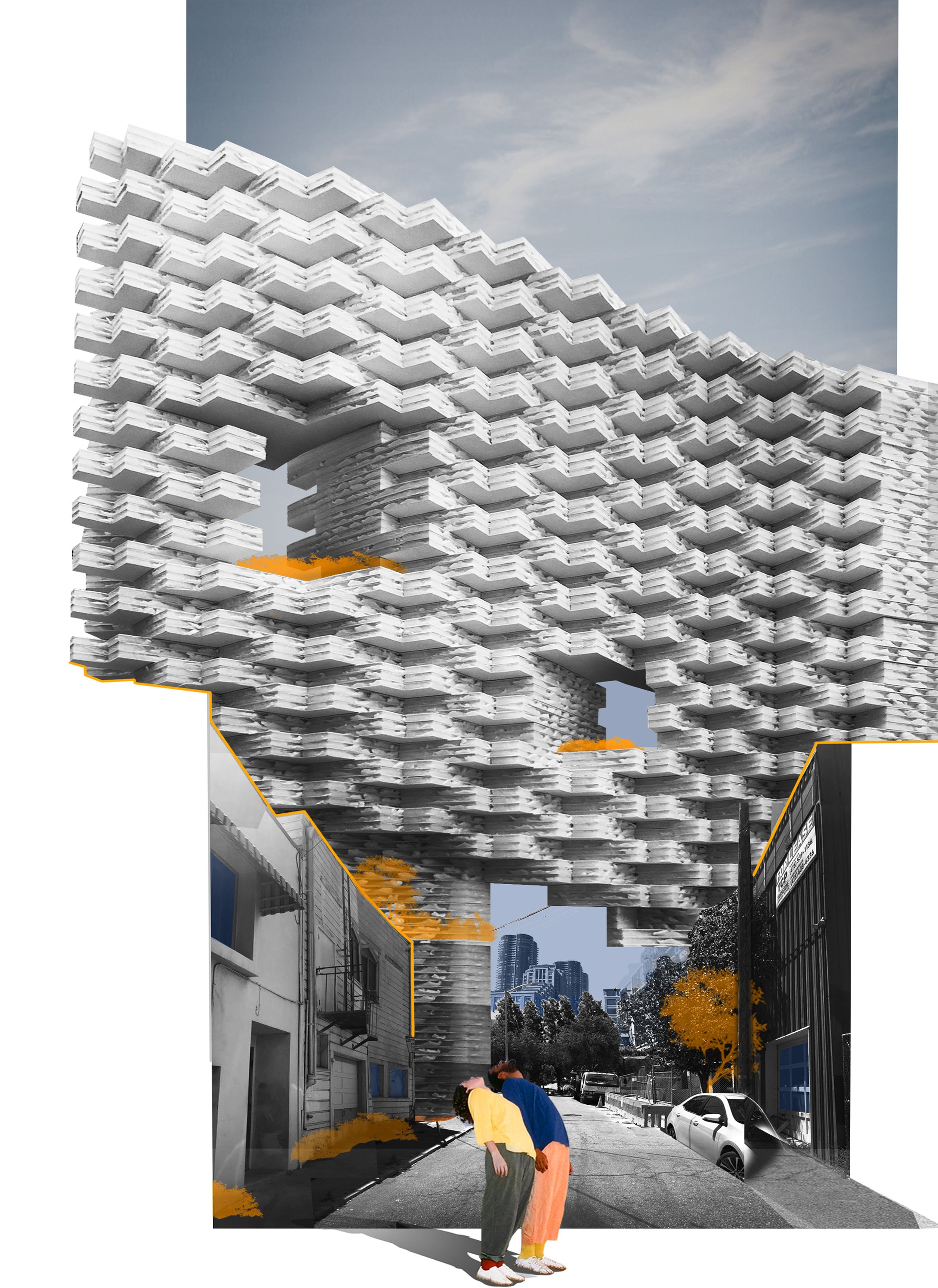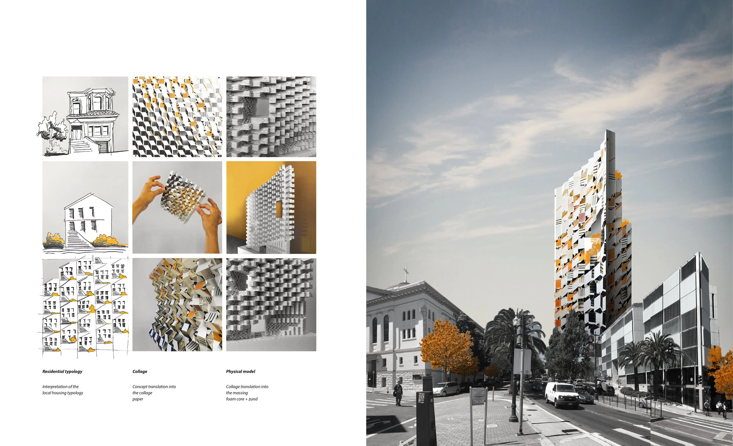This high-rise reinterprets the traditional San Francisco house, drawing on the bay window as a defining architectural element. Multiplied, interlocked, and stacked, this familiar form becomes an inhabitable vertical collage, where angled surfaces reinterpret the bay window at the scale of the tower.
