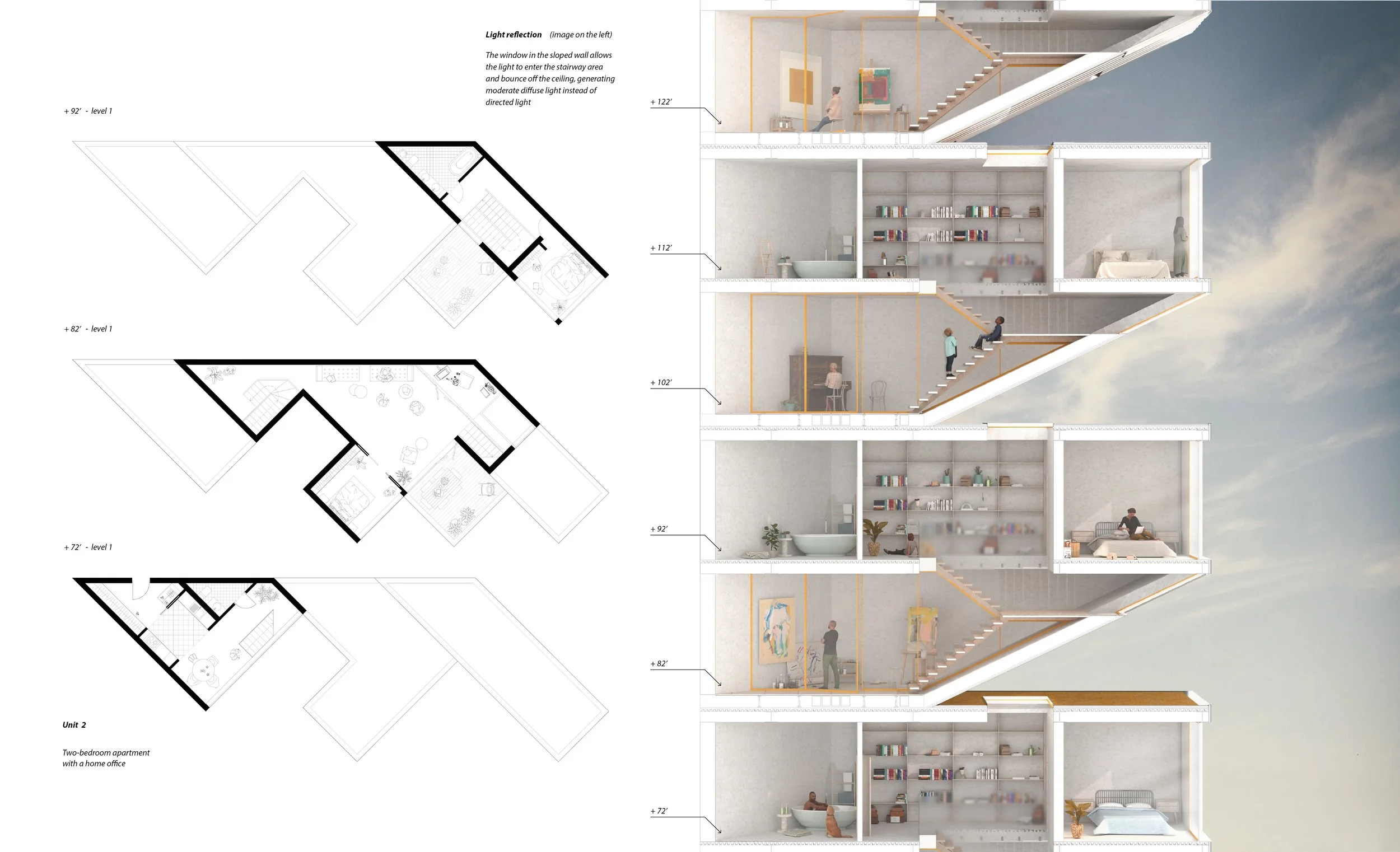 In response to the neighborhood’s network of public gardens, the project incorporates a series of communal gardens within these voids. Distributed throughout the building, they provide shared spaces with expansive views of San Francisco, fostering social interaction and a connection to the landscape. The project explores how high-rise residential design can reinterpret local housing typologies to support healthier, more community-oriented urban living.